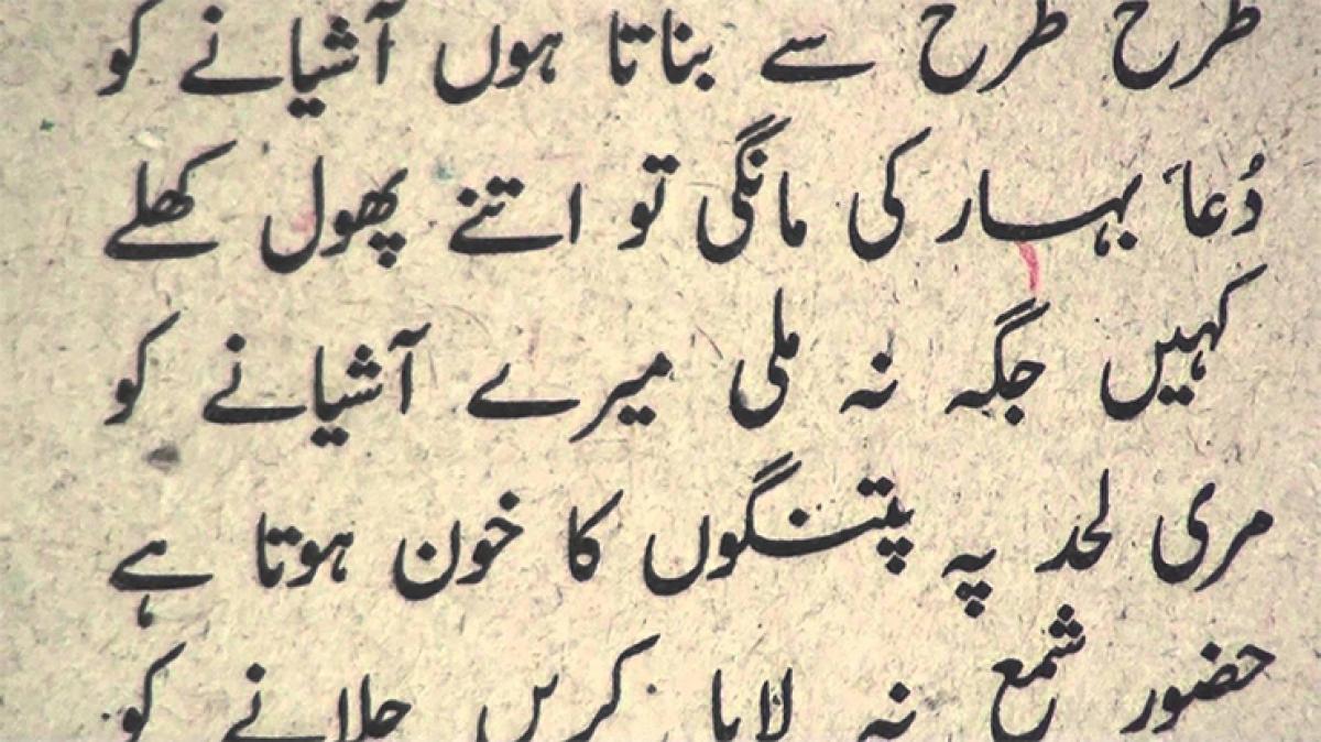 The earliest Urdu poet is supposed to be Khusrau (1253-1325). He started writing as a poet in the reign of Sultan Balban and was a follower of Nizam ud-din Auliya. He is said to have composed ninty-nine works on separate themes and numerous verses of poetry. Among the important works composed by him are Laila Majnun and Ayina-I-Sikandari dedicated to Alau-din-Khalji. Among other well-known poets are Ghalib, Zauq, and Iqbal. Iqbal’s Urdu poetry is available in his collection called Bang- i - dara.