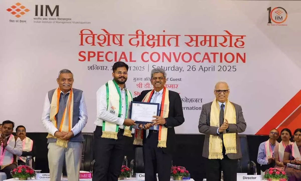 The Indian Institute of Management Visakhapatnam (IIMV) hosted a special convocation on Saturday to mark a significant milestone of the graduation of the first-ever batches of its Executive MBA (EMBA) and Post Graduate Programme in Management for the Centrally Funded Technical Institutions and Institutions of National Importance (PGPMCI).