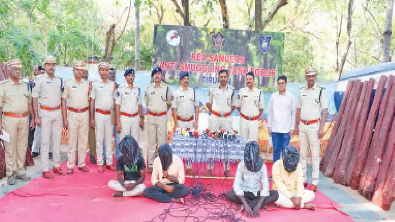 Tirupati: The Red Sanders Anti-Smuggling Task Force (RSASTF) seized 72 red sanders logs worth about Rs 1.65 crore from a tractor tanker in Annamayya district on Wednesday. Four smugglers were arrested, including two from Tamil Nadu and two from Chittoor district.