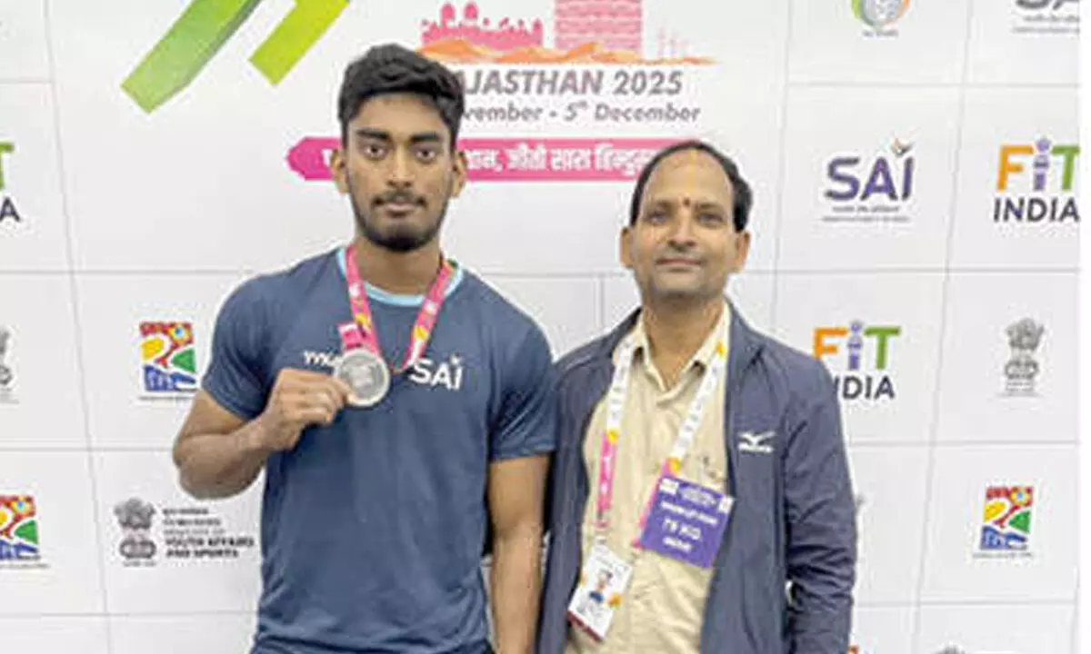Ongole: N Venkata Mahesh, a student from Andhra Kesari University, Ongole, clinched a silver medal in 79 kg weightlifting category at the ongoing Khelo India University Games held in Bikaner, Rajasthan.