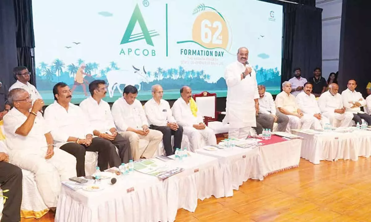 He concluded by urging all stakeholders to work together to advance the cooperative sector and expressed hope that Apcob would achieve greater heights in the future. Apcob chairman G Veeranjaneyulu, Special Chief Secretary B. Rajasekhar, RCS Amar Babu, Apcob MD Srinath Reddy, Nabard CGM Gopal, DCCB chairpersons, PACS leaders, and other dignitaries were present.
