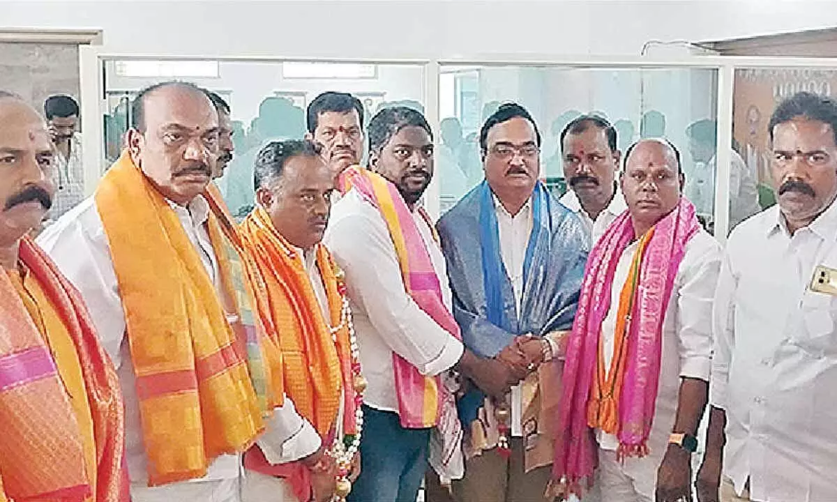 The newly-elected district general secretaries Harikrishna Goud and Amaradevendra Sake Obulesh, district official spokesperson Jyothi Prasad, State council members Sunil Vytla and L.V. Ramesh Babu, district treasurer Surendra Babu, secretaries Kusuma Jayaram and Dola Rajareddy, social media co-convener Medar Srinivasulu and executive committee members Soke Ram Anjaneyulu and Gayatri Yadav were felicitated with shawls by the district president.