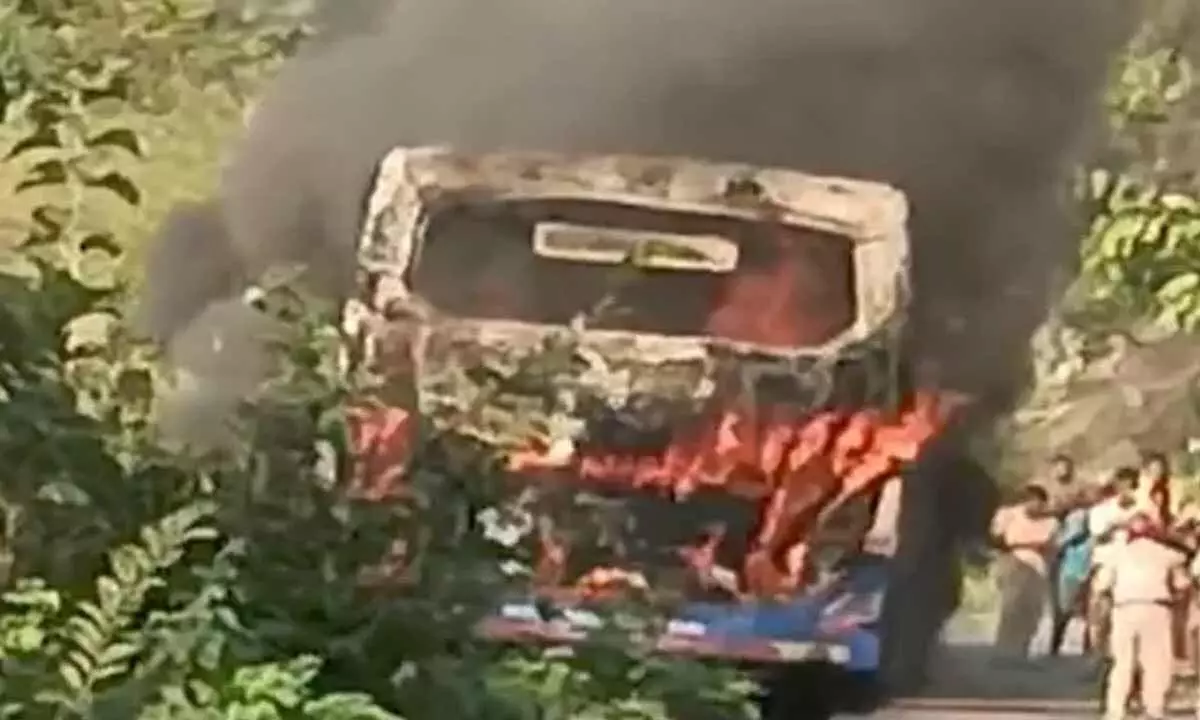 Bus catches fire at Andhra-Odisha border, no casualties reported
