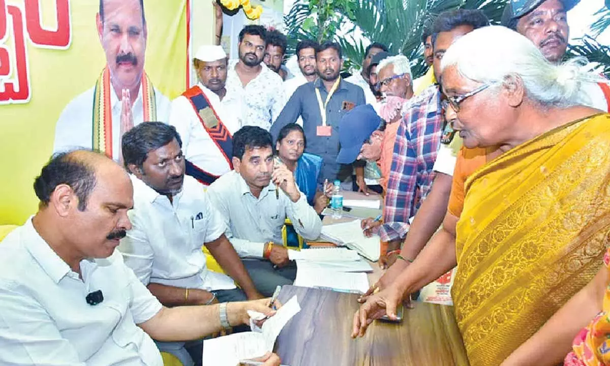 Nuzvid: Housing, Information and Public Relations Minister Kolusu Parthasarathy received petitions from the public through the PGRS (Praja Darbar) platform at his Nuzvid Camp Office on Friday evening and resolved some problems on the spot.