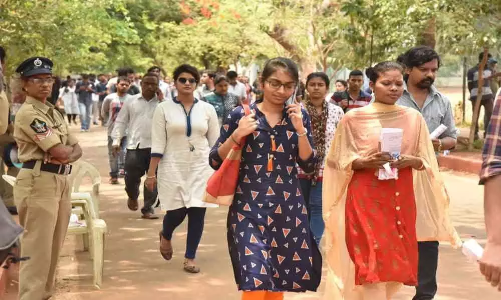 Visakhapatnam: The Union Public Service Commission on Sunday conducted on Civil Services (Preliminary) examination across 22 centres in the district in two sessions. The morning session recorded 48.76 percent while the afternoon session recorded 47.54 percent. In the morning session, 4,443 candidates have written the exam and 4,669 were absent out of 9,112 registered.