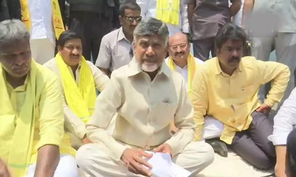 CM Chandrababu Naidu stages protest against IT raids on TDP leaders