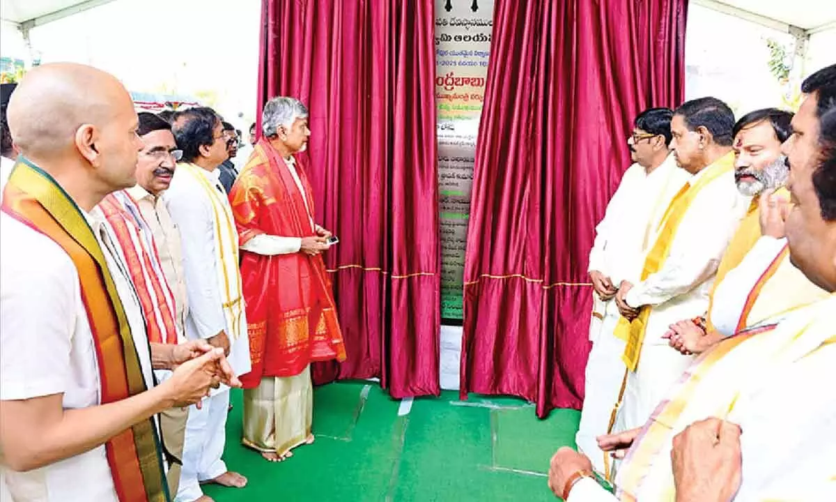 Chief Minister N Chandrababu launches expansion works of TTD temple at Venkatapalem in Amaravati on Thursday