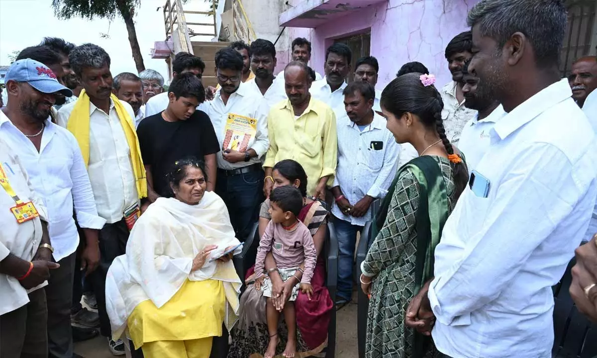Somandepalli(Sri Sathyasai district): The coalition government has delivered welfare schemes to every household within just one year of its governance, said minister for BC welfare, handlooms, and textiles S Savitha. She participated in the ‘First Step Towards Good Governance’ programme held at Mage Cheruvu village in Somandepalli mandal, where she interacted with people, going door-to-door to explain welfare and development initiatives.