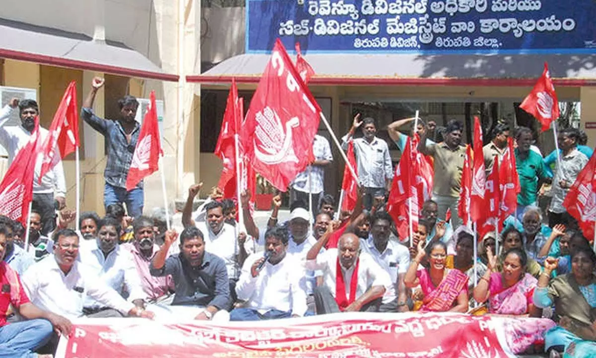 Tirupati: Demanding the government to provide house sites to all the eligible poor in towns and rural areas, the CPI staged a dharna at the RDO office here on Monday.