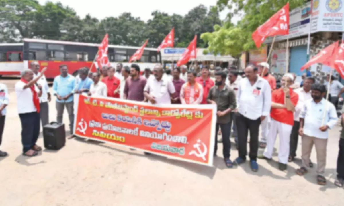 CPM leaders Ch Babu Rao and D Kasi Nath, along with other party members, participated in the agitation, raising slogans against what they termed a “conspiracy” to privatise RTC and undermine small and medium-scale traders in favour of big corporations.