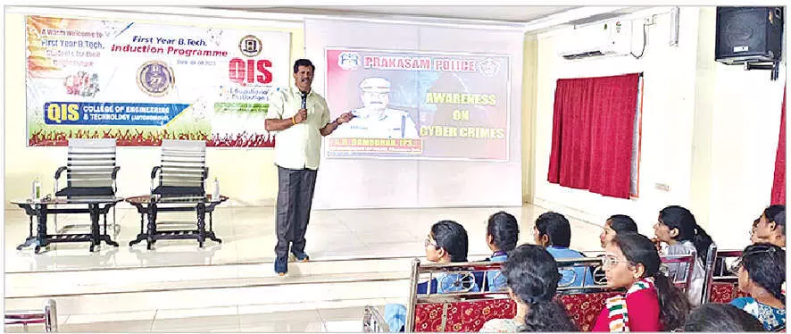 Ongole: Prakasam Police IT Core Inspector V Suryanarayana conducted a comprehensive cybercrime awareness session for students at QIS College of Engineering and Technology here on Tuesday.
