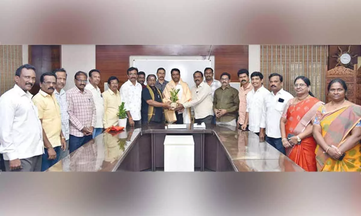 Members of the APNGO Association felicitated collector G Lakshmisha at the collector’s camp office in Vijayawada on Tuesday, marking the completion of his first year as NTR District Collector. NTR District President D Satyanarayana Reddy, Associate President Vemuri Prasad, Secretary D Ramesh, Vijayawada City President CVR Prasad, and several executive committee members met the Collector at his camp office to extend their best wishes and express their support.