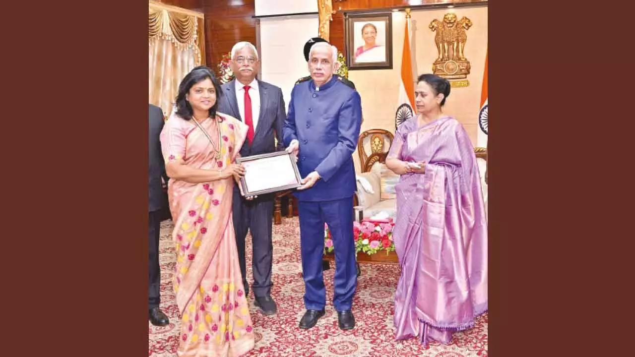 She received the award and the gold medal from Governor of Andhra Pradesh and President of Indian Red Cross Society Andhra Pradesh State Branch S Abdul Nazeer at Raj Bhavan in Vijayawada on Thursday. Collector Nagarani was selected for the Red Cross Award for the year 2024-25 in recognition of her outstanding services during the floods in West Godavari district.