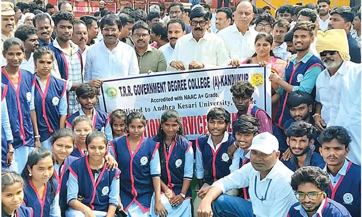 Students from TRR Government Degree College, TRR Junior College, Government Polytechnic, Government ITI, Kendriya Vidyalaya, ZP High Schools, Horticulture College, and Prakasam Engineering College participated in planting approximately 2,000 saplings of various species.
