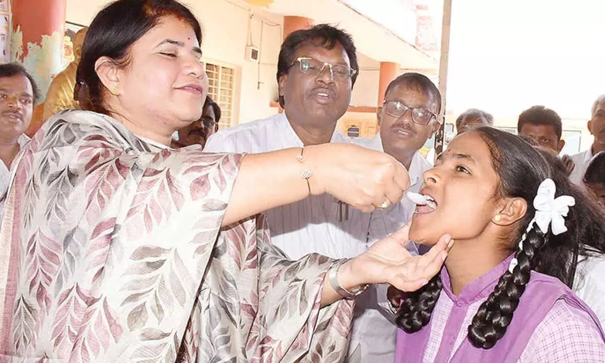 Sundipenta /Srisailam (Nandyal district): In line with the principle that good health is essential for happiness, District Collector G Rajakumari has instructed teachers to ensure that every student takes Albendazole tablets to promote their well-being.