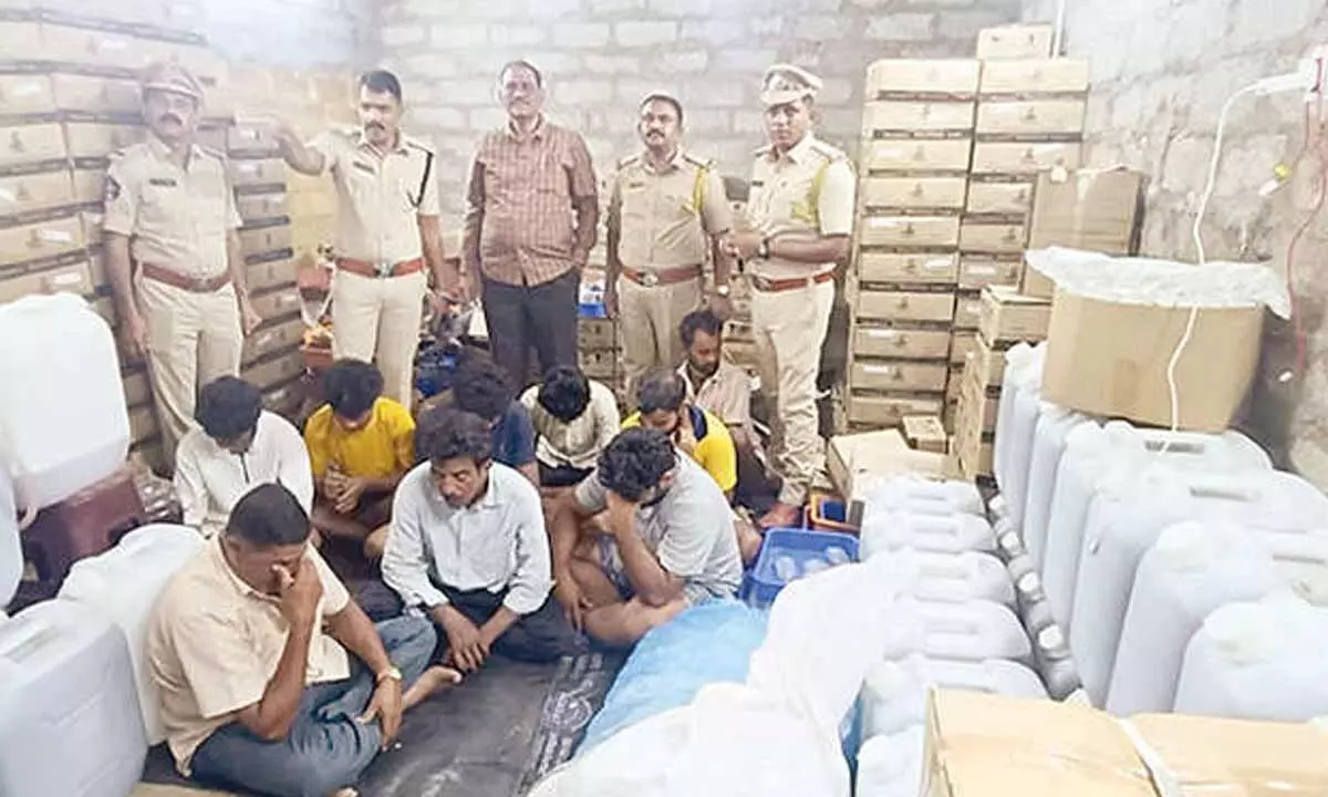 The racket came to light when prohibition and excise officials, acting on a tip-off, raided a sophisticated illegal distillery operating out of a rented facility near the Mumbai–Chennai National Highway.
