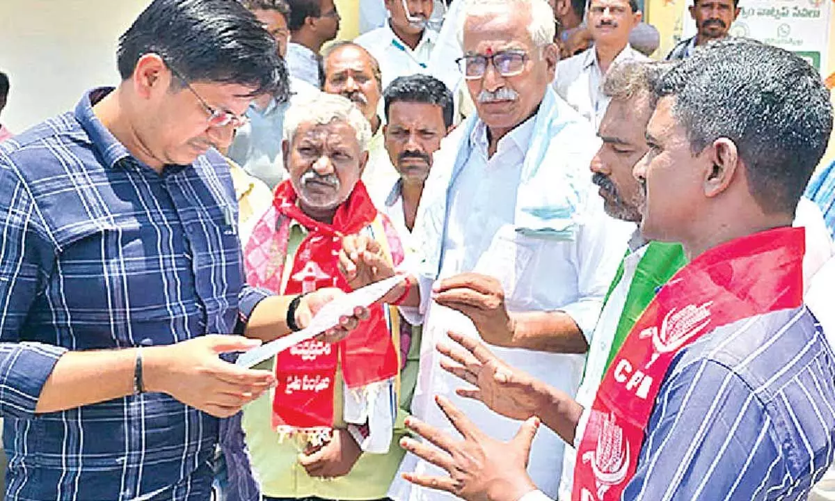 Devanakonda (Kurnool district): To address the irrigation water scarcity in several villages of Devanakonda mandal, leaders of the Andhra Pradesh Rythu Sangham and the Communist Party of India (CPI) submitted a memorandum to the Revenue Divisional Officer (RDO) of Pattikonda, Bharat Naik, on Tuesday. They called for the construction of a sub-canal from the Handri-Neeva main canal near Gundlakonda to ensure that irrigation water reaches deprived villages.