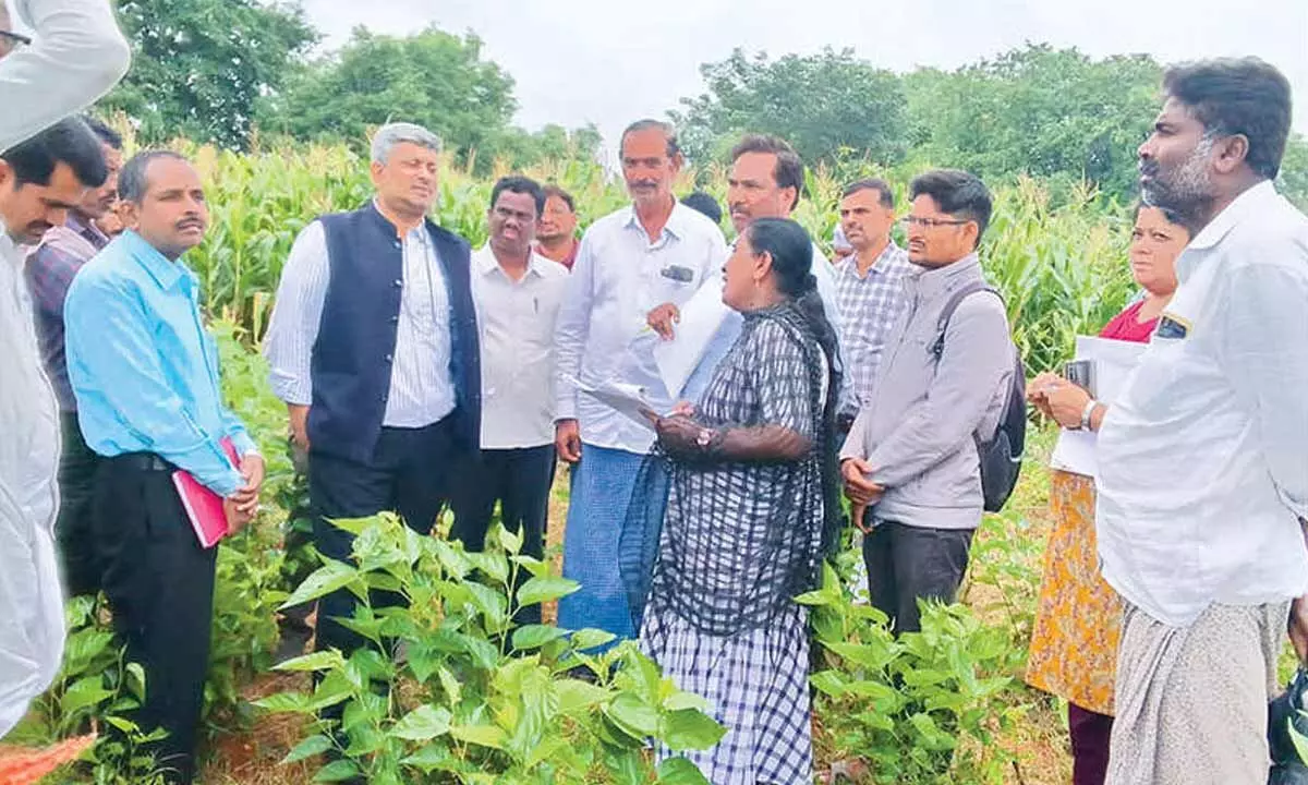 During his field visit to Marava Kothapalli village in Chilamathur mandal, Jain inspected maize and mulberry fields cultivated by local farmers.