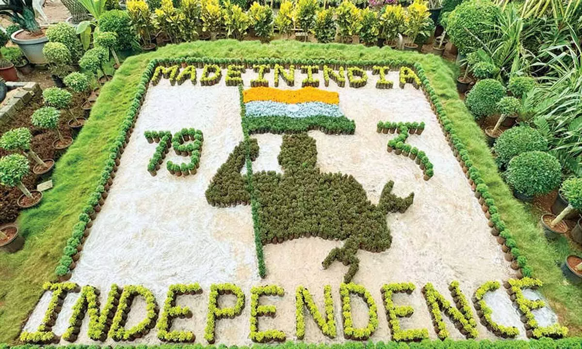 Rajamahendravaram: The Palla Venkanna Nursery in Kadiyam celebrated Independence Day with a unique and creative floral arrangement. As it is their annual tradition, the nursery management created a special display with plants to convey a message on the occasion of the 79th Independence Day.