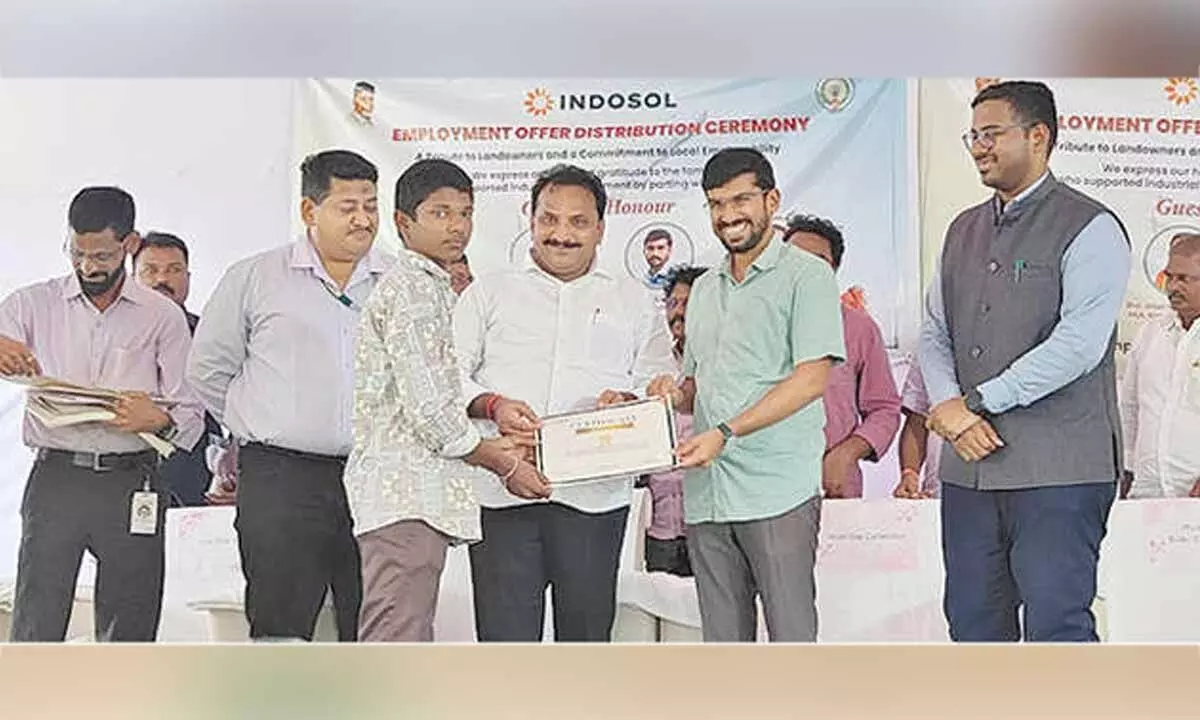 Nellore: As part of initiative in providing employment to the family members of farmers who sacrificed their land for establishment unit in Kandukur, Indosol Solar PVT limited has organised Employment Offer Distribution Ceremony (EODC) at Chevuru village of Kandukur mandal on Wednesday.