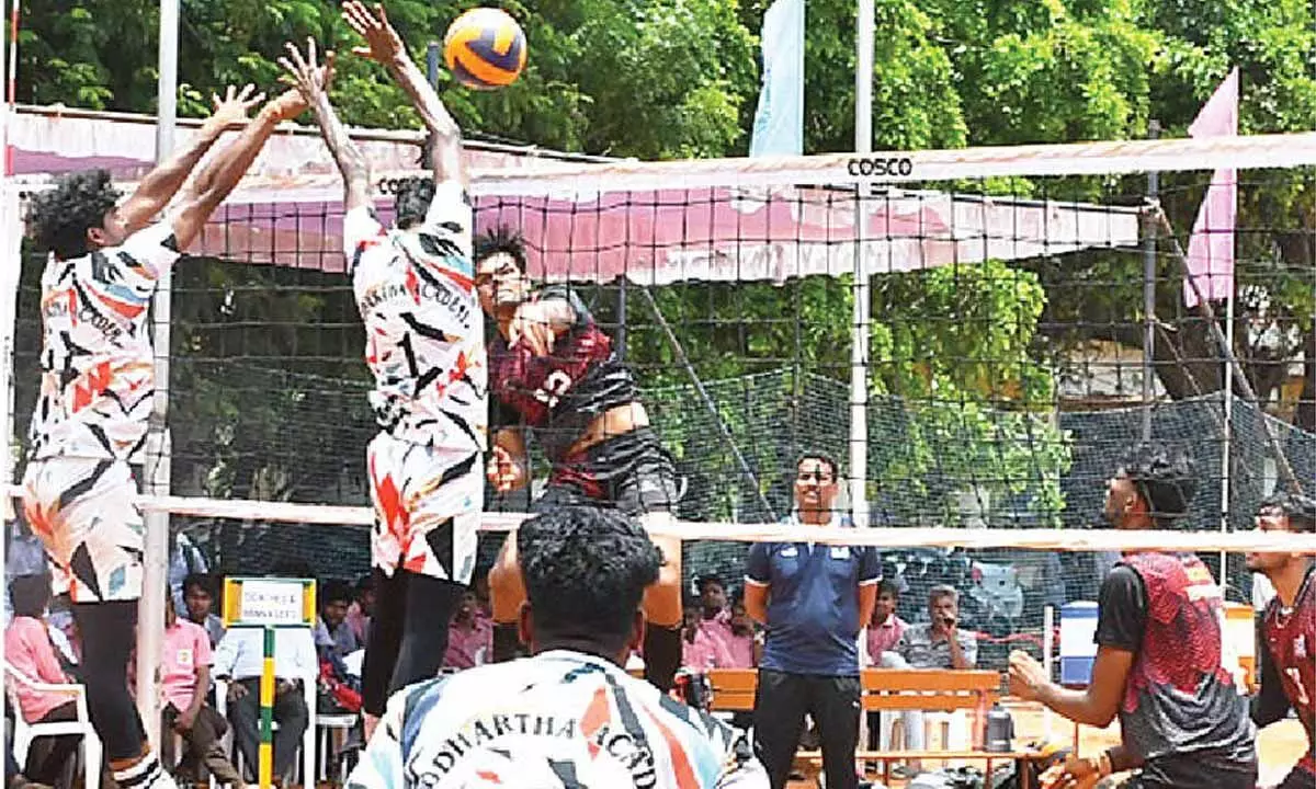 Vijayawada: The All-India Invitational Volleyball Tournament, part of the golden jubilee celebrations of Siddhartha Academy of General and Technical Education, has reached its second day. The tournament is being held at the PB Siddhartha Arts and Science College grounds.