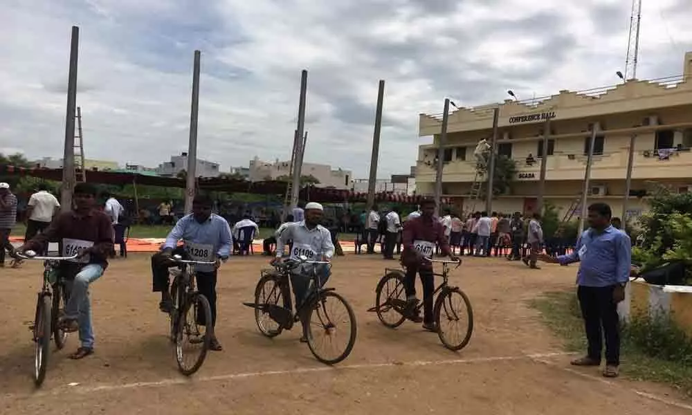 APSPDCL superintendent engineer B Jayabharat Rao, CRDA SE A Srinivasa Murthy, DE GB Srinivasa Rao pedaled the cycle. APSDCL has made all the arrangements to avoid inconvenience to the candidates.