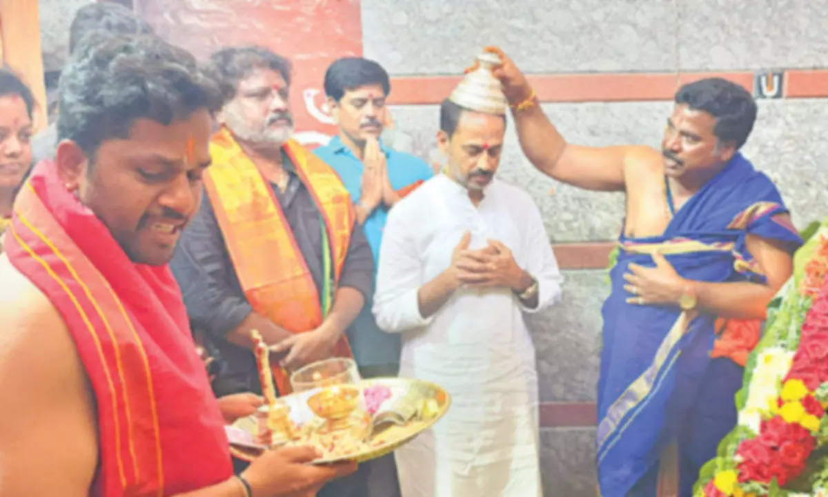 Palapatidinne: As part of the auspicious Sravana Masam Mahotsavam, Kadiri MLA Kandukunta Venkata Prasad participated in the first Sravana Saturday puja celebrations held at the renowned spiritual centre, Palapatidinne Anjaneya Swamy temple in Nallacheruvu mandal. On the occasion, the MLA offered prayers to Lord Anjaneya Swamy and actively took part in the Annadanam (mass feeding) programme organised as part of the festivities. Accompanying him were state executive secretary P V Pavan Kumar Reddy and his spouse, along with several local leaders from Nallacheruvu mandal.