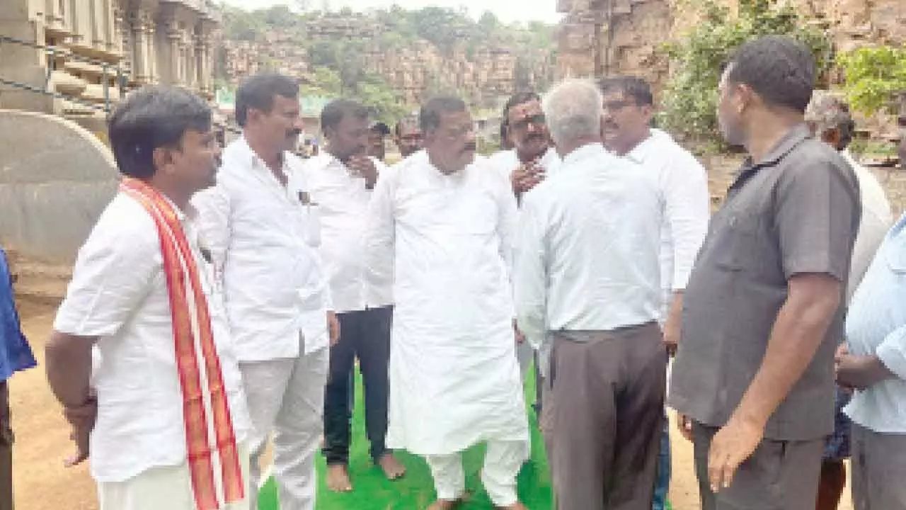 During his visit, the MLA offered prayers to the presiding deities and reviewed the ongoing development works within the temple premises. He emphasised that the construction of the temple prakaram (inner compound wall), which has been pending for nearly three years, must be completed without further delay to ensure the convenience and safety of devotees. Speaking to engineering officials and contractors on site, Suryaprakash Reddy expressed concern over the difficulties being faced by devotees, particularly on Fridays and Saturdays when footfall is high.