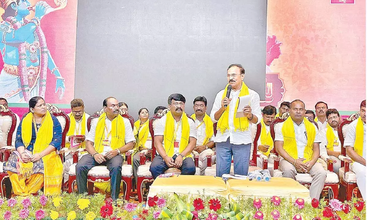 Hundreds of leaders and cadre from the assembly constituency, mandal, to the booth level participated in these Mini Mahanadus, discussed the local issues, and assured all support to the party workers. Speaking at the Mini Mahanadu in Kondapi, along with AP Maritime Board chairman Damacharla Sathya, the social welfare minister and local MLA Dr DSBV Swamy said that workers are the TDP’s strongest foundation and their sacrifices are invaluable. He announced that the government has withdrawn false cases filed against 41 TDP workers in the constituency during the previous YSRCP government. The minister criticised former Chief Minister Jagan for pushing the state into a debt trap through inefficient governance. The minister revealed that ‘Annadata Sukhibhava’ and ‘Talliki Vandanam’ schemes will be implemented in June.