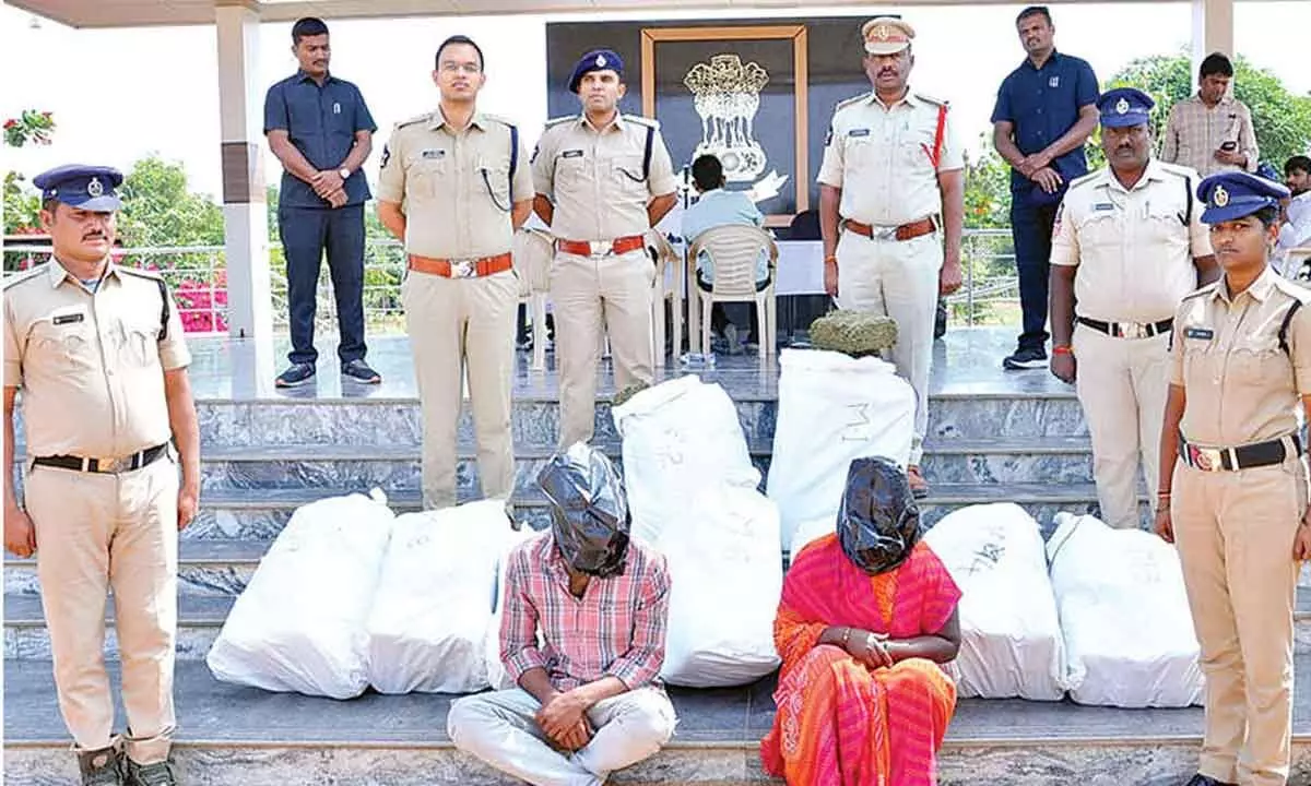 Madanapalle: Madanapalle police cracked a major ganja smuggling case as part of their intensified drive against drug trafficking, seizing 179 kilograms of ganja concealed beneath onion sacks in a luggage auto.