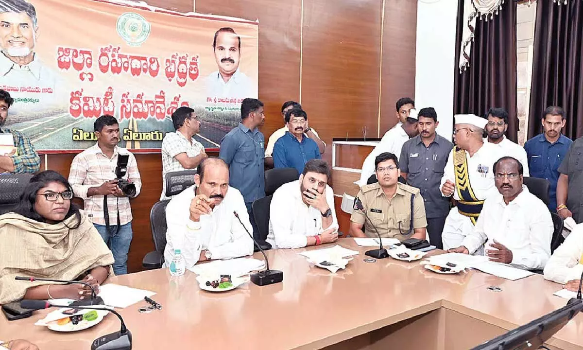 He said that everyone should come together to control accidents so that Eluru district can be made a road accident-free district. Accidents are occurring due to unauthorised dhabas, hotels, parking of heavy vehicles in unauthorised places, speeding of vehicles, etc., and the officials of the relevant departments should take coordinated steps to prevent accidents by controlling these. Highway patrols should be constantly vigilant, and steps should be taken to ensure that there is more lighting in places where accidents are likely to occur during the night. The Minister instructed the national highways officials to take steps to establish service roads in places where there are no service roads on the national highway from Kalaparru to Gundugolanu. He said that black spots where accidents occur most often on the national highway should be identified and steps should be taken to prevent accidents. He said that speeding is the cause of accidents, and speed guns should be installed to control speeding on the national highway and cases should be registered against motorists driving at excessive speed. He said that rules and regulations should be formulated for the establishment of dhabas and hotels on the highway. He instructed the officials to hold safety committee meetings at the district level as well as the constituency level, and to organise awareness programmes at the mandal level in every college on road safety, wearing helmets, and other safety issues.