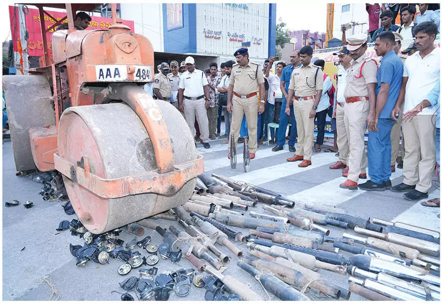 As part of a special drive, Anantapur city police seized 150 modified silencers and 300 high-decibel horns from violators. These were destroyed under the supervision of SP Jagadeesh near the Clock Tower using a road roller.