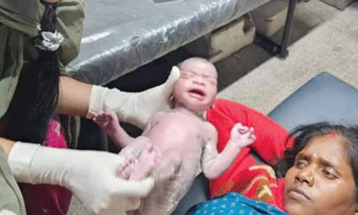 Visakhapatnam: When a 24-year-old pregnant woman boarded Dharti Aaba SF Express, little did she expect that she would develop labour pain in the middle of her journey.