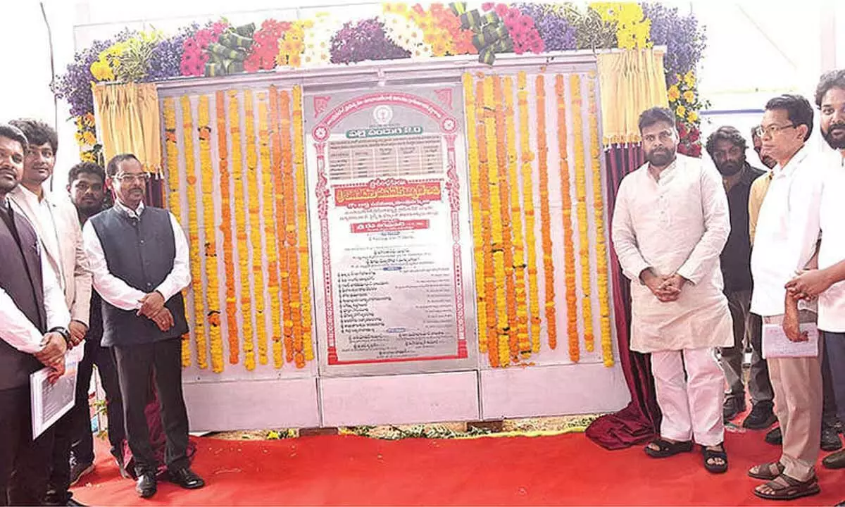 Dy CM Pawan Kalyan inaugurating Palle Panduga 2.0 Pylon at Sivakodu village