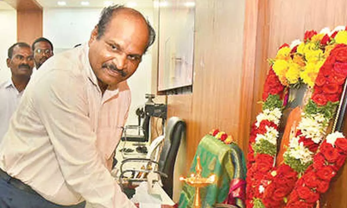 Nellore: District administration has organised Sathya Sai Baba birth centenary celebrations in a grand scale at the Collectorate here on Sunday. Floral tributes were paid to the portrait of Sathya Sai Baba.
