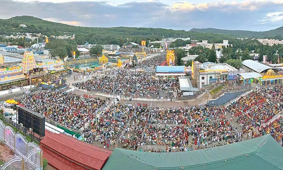 Tirupati: Tirumala witnessed a massive influx of devotees on Sunday as thousands gathered to witness the Garuda Vahana Seva, one of the most significant events of the annual Brahmotsavams of Lord Venkateswara. The spectacle, featuring Lord Malayappa Swamy majestically seated on the golden Garuda Vahana, drew pilgrims from across the country, reinforcing Tirumala’s status as a premier spiritual destination.