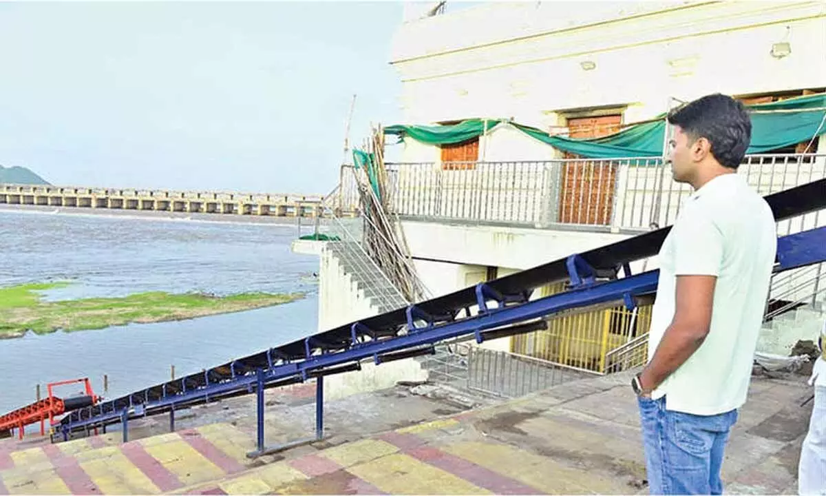 The Water Resources Department has issued the first flood warning for Prakasam Barrage, as flood inflows and discharges have exceeded 3.97 lakh cusecs. Officials are advising residents living along the river basin to evacuate to safe locations. Additionally, staff have been instructed to remove fallen trees, branches, and debris caused by strong winds, and to ensure that roads and drains are kept clear for smooth water flow.