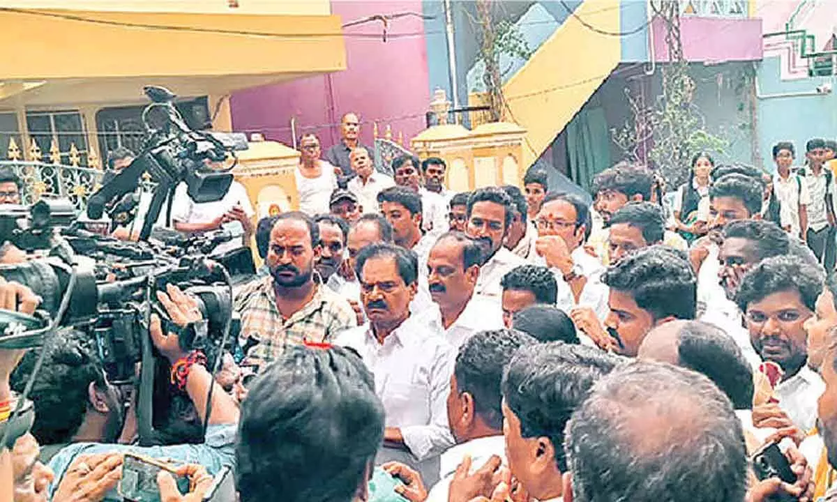 Around 11 am, a six-member SIT team led by an Additional SP reached his residence, triggering tension among YSRCP cadres.