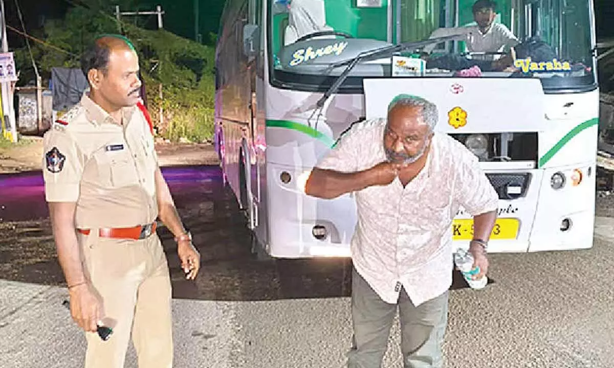 They are stopping the vehicles of travel buses going to Bellary and Raichur in the early hours of the morning and taking steps to ensure that the driver washes his face.