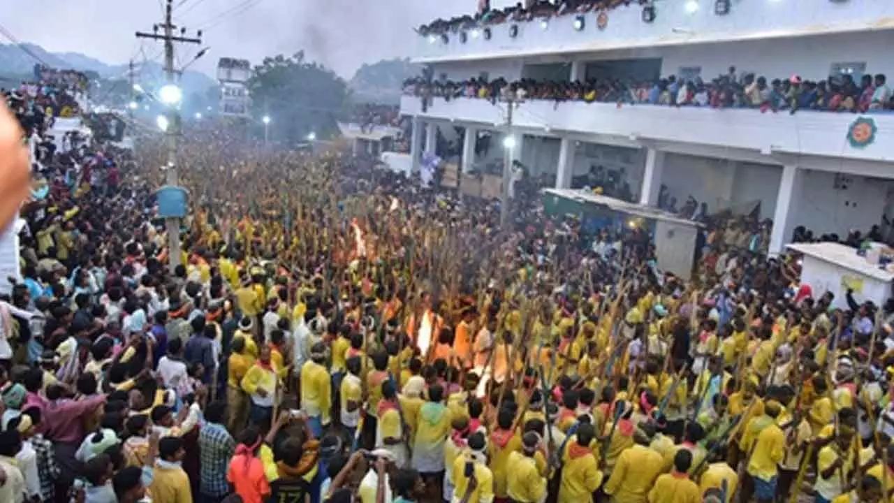 Thousands of people from various parts of Kurnool and surrounding districts and neighbouring states like Telangana and Karnataka gather at the village to watch the traditional fight.