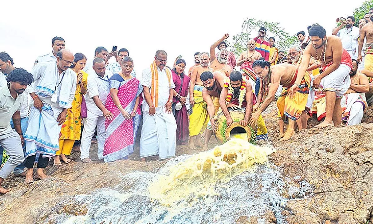Sthanacharyulu TP Raja Gopal, chief priest G Srinivasacharyulu, archaka K Sitaramacharyulu reiterate that when the region gets deprived of rains, such ritual would gain larger significance.