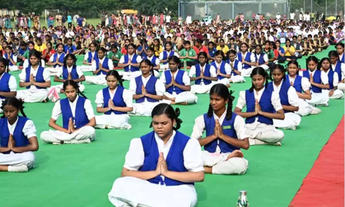 The event aimed to promote health and wellness among students and featured a collective practice of yoga asanas alongside the dignitaries.