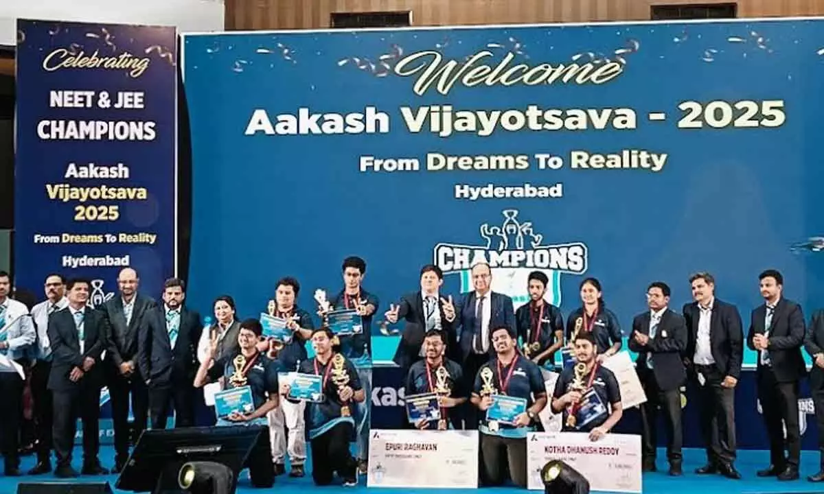 Aakash Educational Services Limited (AESL) Felicitates NEET UG 2025, JEE Main and Advanced 2025 Toppers from Hyderabad at Champions of Aakash Event