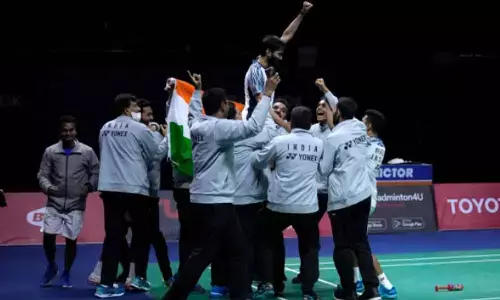 Bangkok: DISHING out a performance for the ages, India's men's badminton team lifted the Thomas Cup title with a commanding 3-0 win over powerhouse Indonesia on Sunday, a historic triumph that will enhance country's status in the sport. World Championships medallist Lakshya Sen, Kidambi Srikanth and doubles players Chirag Shetty and Satwiksairaj Rankireddy delivered when it mattered the most as they stunned the 14-time champions to win the prestigious team championship for first time ever. An incredible week culminated in a fitting manner for Indian badminton as the country had never reached the summit clash of the world's most prestigious team event before. The underdog Indian side had not even reached the last-four stage since 1979 and ended up upsetting formidable Malaysia and Denmark en route the summit clash.
