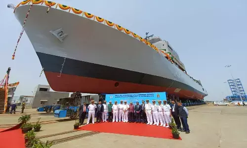Visakhapatnam: 'Nirdeshak', a large survey vessel for the Indian Navy was ceremoniously launched by Sarbani Dasgupta in the presence of Vice Admiral Biswajit Dasgupta, Flag Officer Commanding-in-Chief, Eastern Naval Command, at L&T Shipyard, Kattupalli on Thursday.