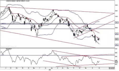On a 75-minute chart, the Nifty faced resistance at a sloping trend line. It closed in a moving average ribbon, showing neutral bias. The MACD line just moved above the zero line. As the Nifty is in moving in a counter-trend, as long as 15385 is protected with a positive bias. Volatility is the nature of the market. Even in volatile conditions, follow the market price action. The Nifty failed to close above the 23.6 per cent retracement level (15563) of the prior downtrend. On Wednesday, also it faced resistance at the same level. For an up move to continue, it has to clear this resistance first. As discussed earlier, above this level, the index can test the gap area or last week's high of 15886. A close below Thursday's low of 15367 will resume the down move. The current counter is five days old. Expect another 2-3 days to continue this consolidation.|