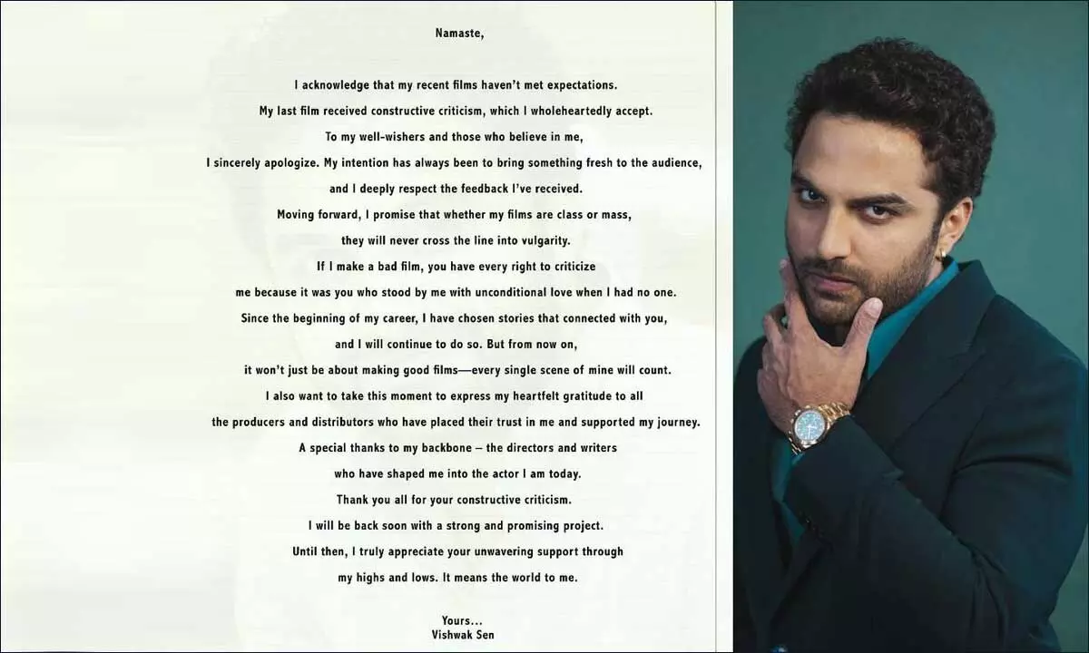 Acknowledging the criticism, Vishwak took to Instagram to share a heartfelt note, expressing his regret and addressing his fans directly. "I acknowledge that my recent films haven’t met expectations. My last film received constructive criticism, which I wholeheartedly accept. To my well-wishers and those who believe in me, I sincerely apologize," he wrote.