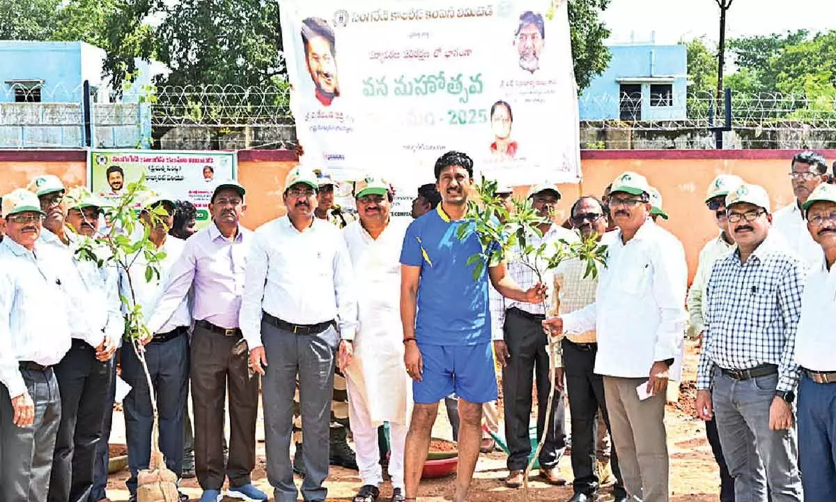 SCCL CMD N Balram sapling plants in Singareni area Kothagudem.