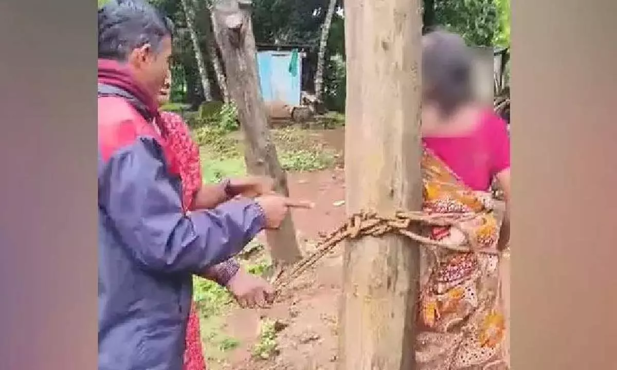 Shivamogga: A 70-year-old woman was allegedly tied to a tree and brutally “assaulted” by her neighbour following an argument over garbage disposal in front of her house, police said on Monday. The incident occurred on the morning of June 24 in Gautampura village but came to light only after a video of the assault went viral on social media, sparking widespread outrage, they added.
