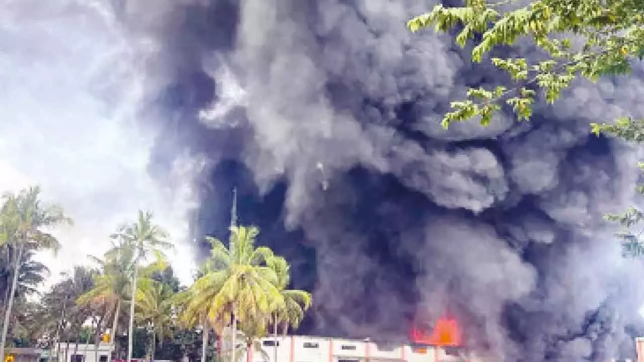 Bengaluru: A fire broke out in the early hours of Tuesday at a godown used for storing lubricant products in Nelamangala on the outskirts of the city, fire officials said. The incident occurred at a third-party shared warehouse operated by Toll Logistics on Tumkur Highway in Karnataka, according to an official statement from Shell. The fire department was alerted at 3.35 am, following which 10 fire tenders were dispatched to the site.